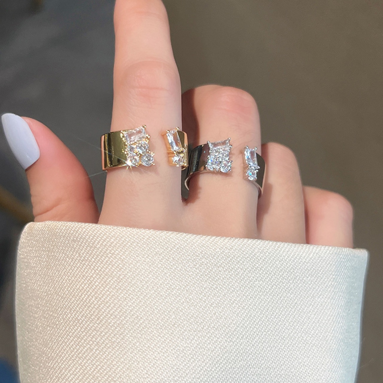 LIVVY シルバーカラーのトレンディなミニマリストの幾何学ジルコン調節可能なリング女性ジュエリーパーティーギフト アジャスタブル 指輪 銀 Liv95122175691
