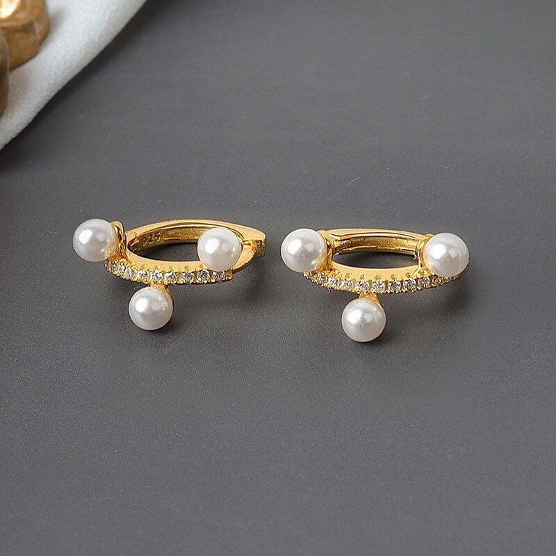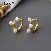 LIVVY シルバーカラー パール ジルコン フープ ピアス シンプル 絶妙 ジュエリー アクセサリー イヤリング 真珠 リング 指輪 銀 Liv74907311392