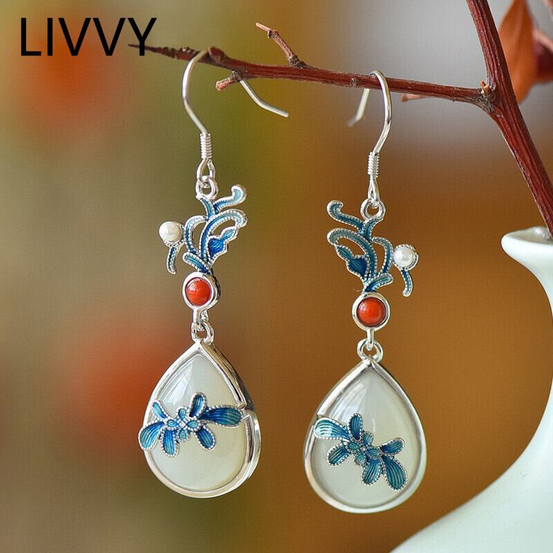 LIVVY シルバーカラー水は形ブルートーテムイヤリング女性トレンディなシンプルな月光オパールジュエリーギフト トートバッグ 蛋白石 指輪 銀 Liv19492448156