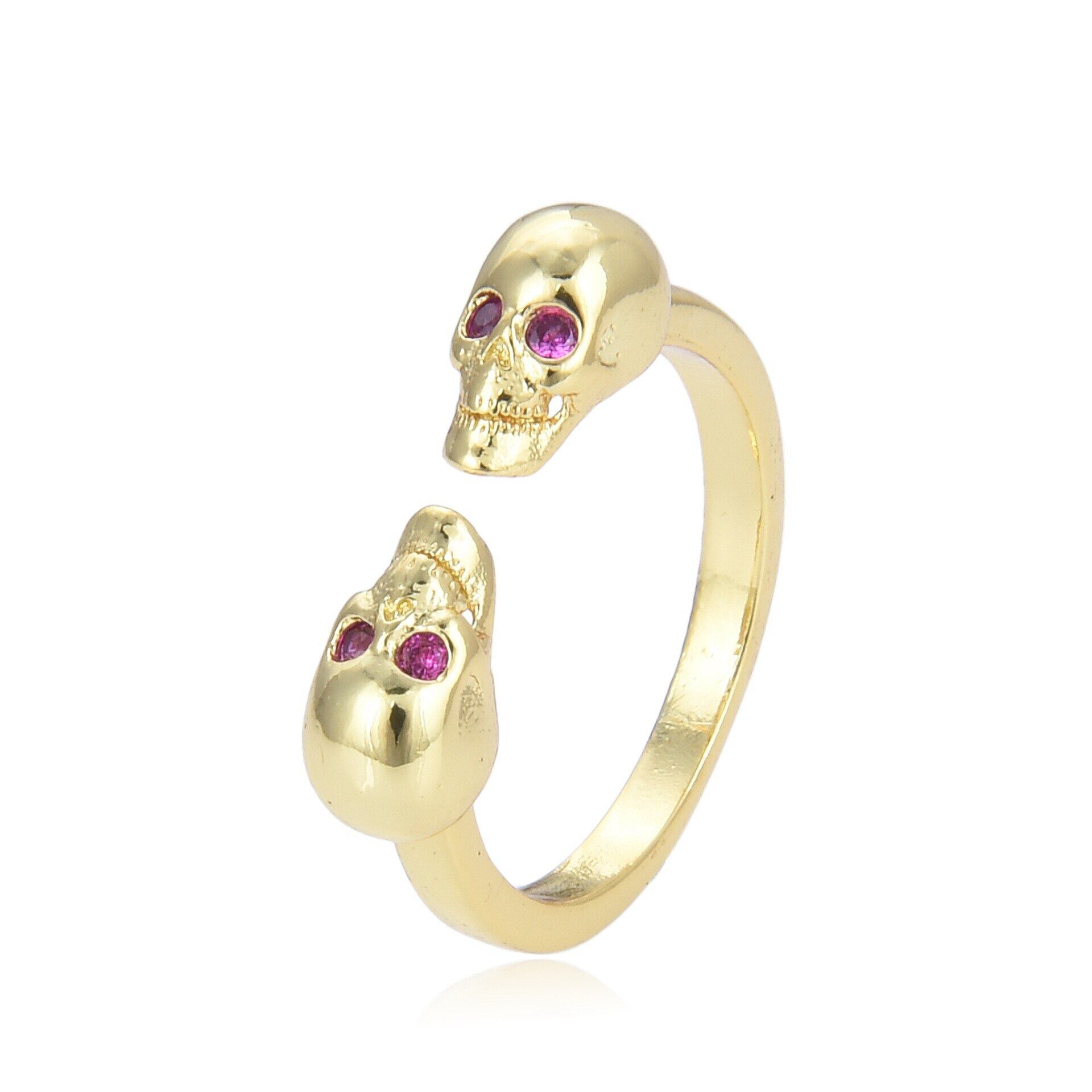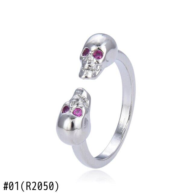 LIVVY シルバーカラーパンクダブルスケルトン頭蓋骨リング女性男性女の子クールリングジュエリー誕生日ギフト 指輪 銀 Liv71664722195
