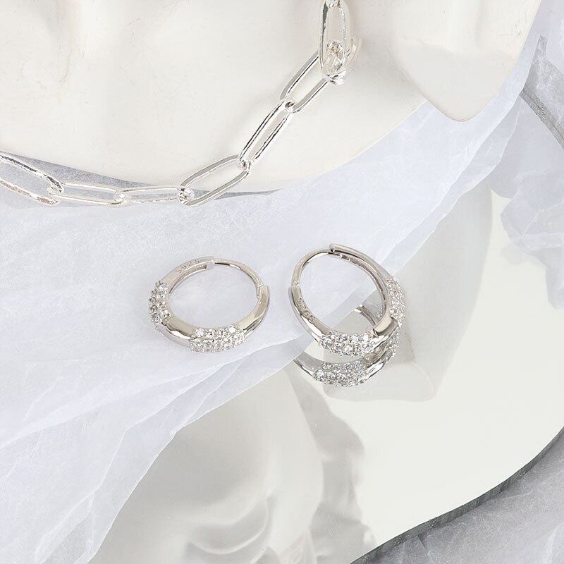 LIVVY シルバーカラーラウンドジルコンイヤリングチャーム女性トレンディジュエリーパーティーアクセサリーギフトゴールドカラーイヤリング 指輪 銀 Liv17068502858