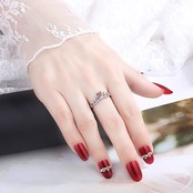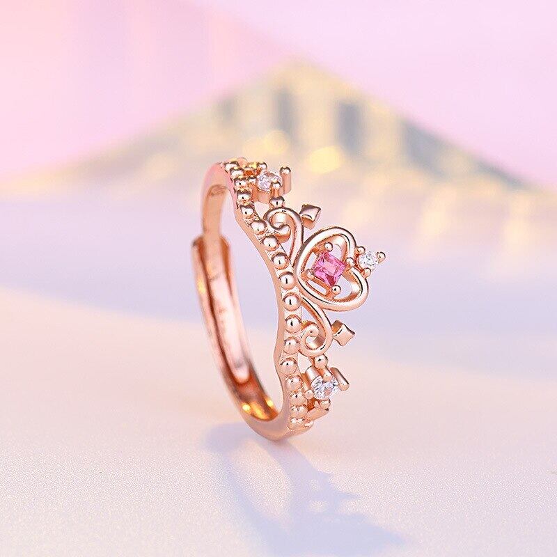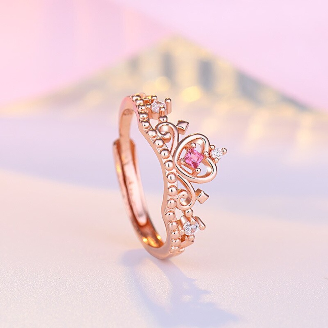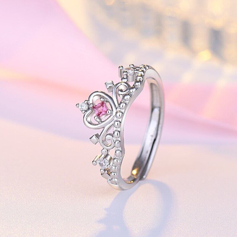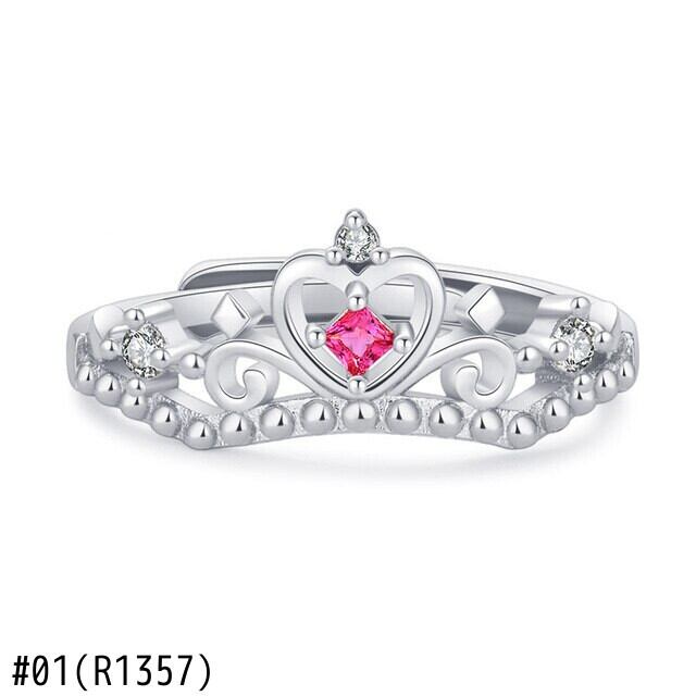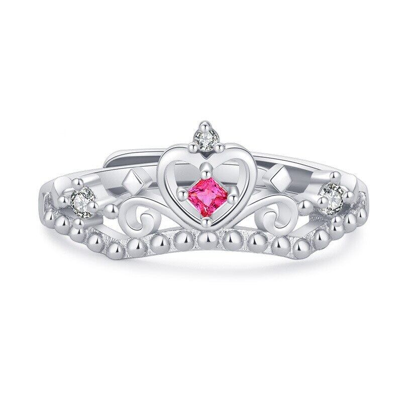 シルバーカラーの高級ティアラクラウンスパークリングラブハートクリスタルジルコンリング女性婚約記念ジュエリー 指輪 銀 Liv32407707573