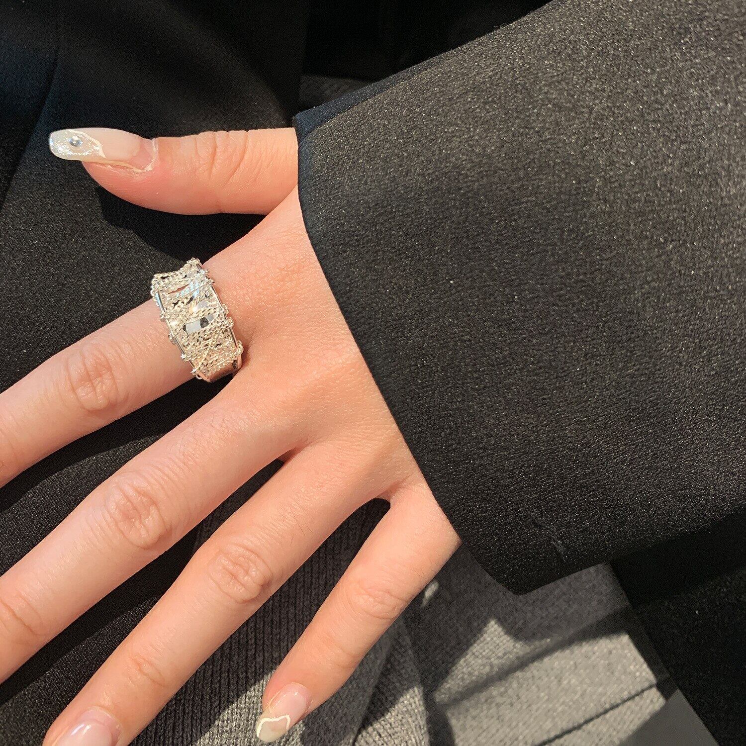 LIVVY シルバーカラーオープニングアジャスタブルチェーンリング女性ライトラグジュアリーシンプル繊細なパーティージュエリーアクセサリー 指輪 銀 Liv29717527913