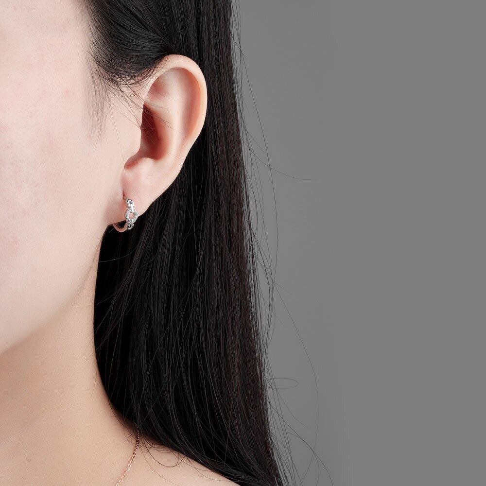 LIVVY シルバーカラーくり抜かれた幾何学ジルコン小さなフープイヤリング女性クリエイティブパーティージュエリーアクセサリー 指輪 銀 Liv58983919000