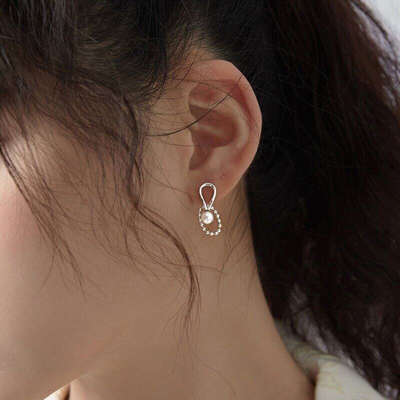 LIVVY シルバーカラーの高級ハート中空幾何学真珠スタッドピアス女性ガールトレンディなジュエリーアクセサリー イヤリング パール リング 指輪 銀 Liv54162337193