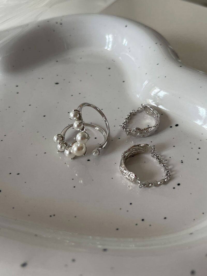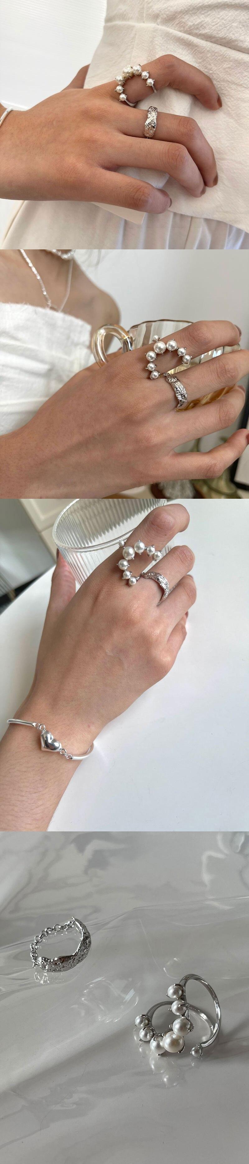 LIVVY シルバーカラーダブル中空アウト真珠調節可能なリング女性シンプルな光の高級パーティージュエリー アジャスタブル 指輪 パール 銀 Liv29488660031