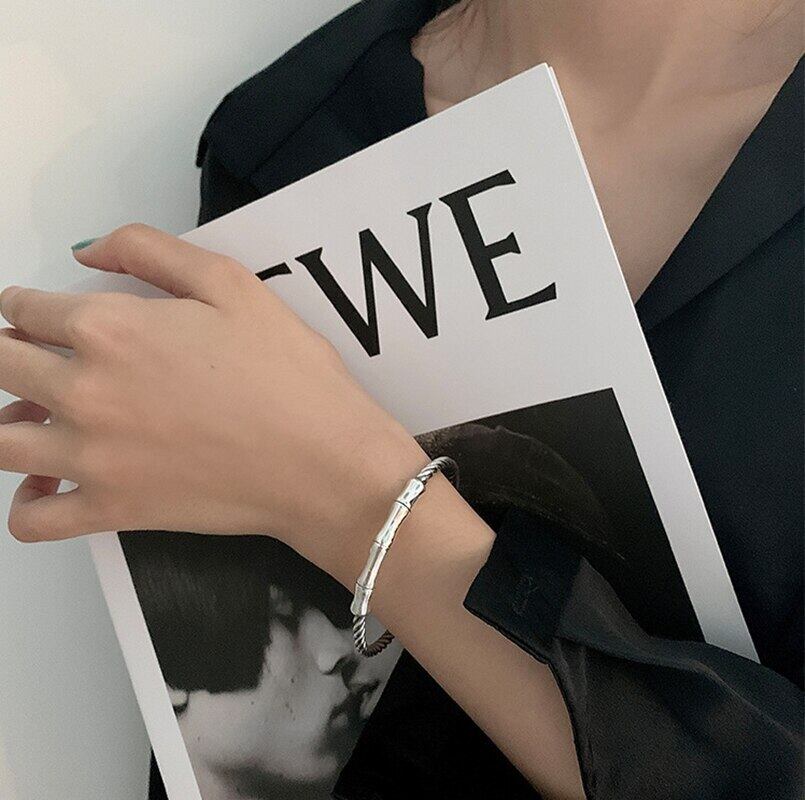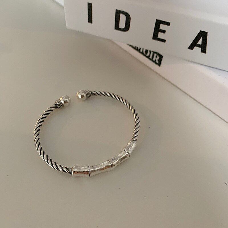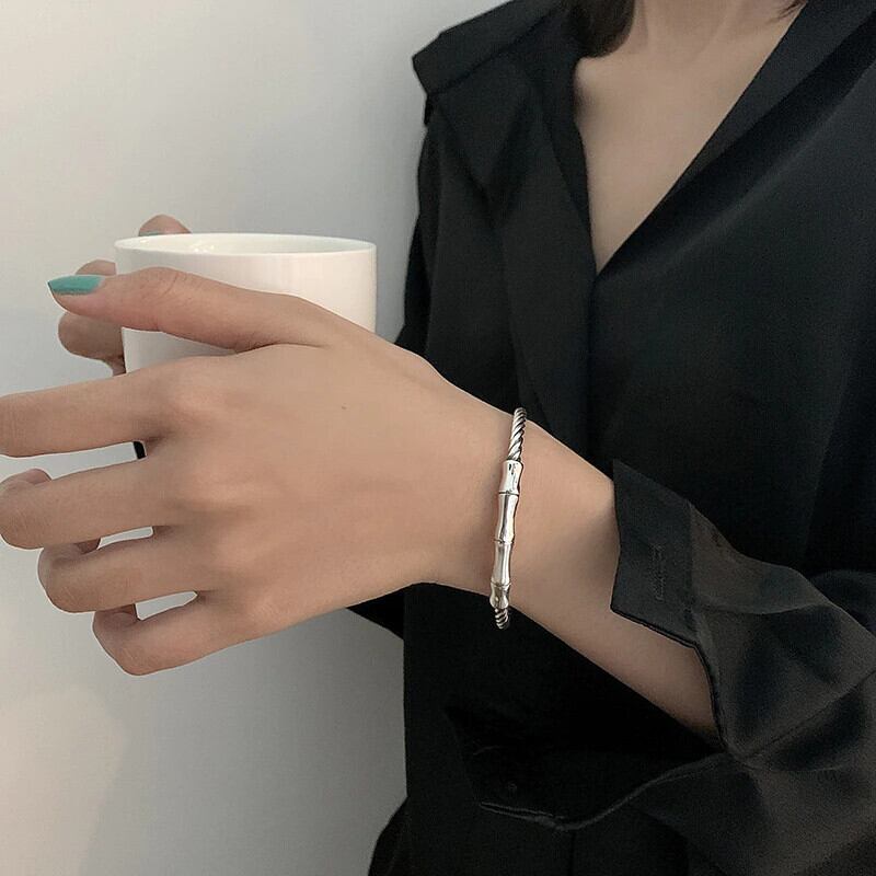 LIVVY 竹手作り織りシルバーカラーブレスレット & バングル女性トレンディなパーティージュエリーギフト 銀 Liv731631666