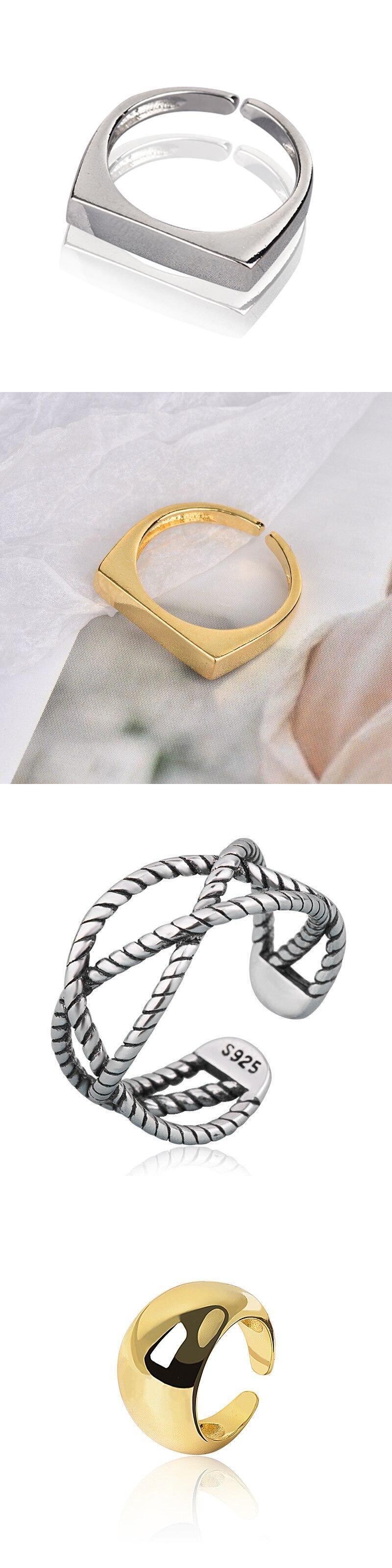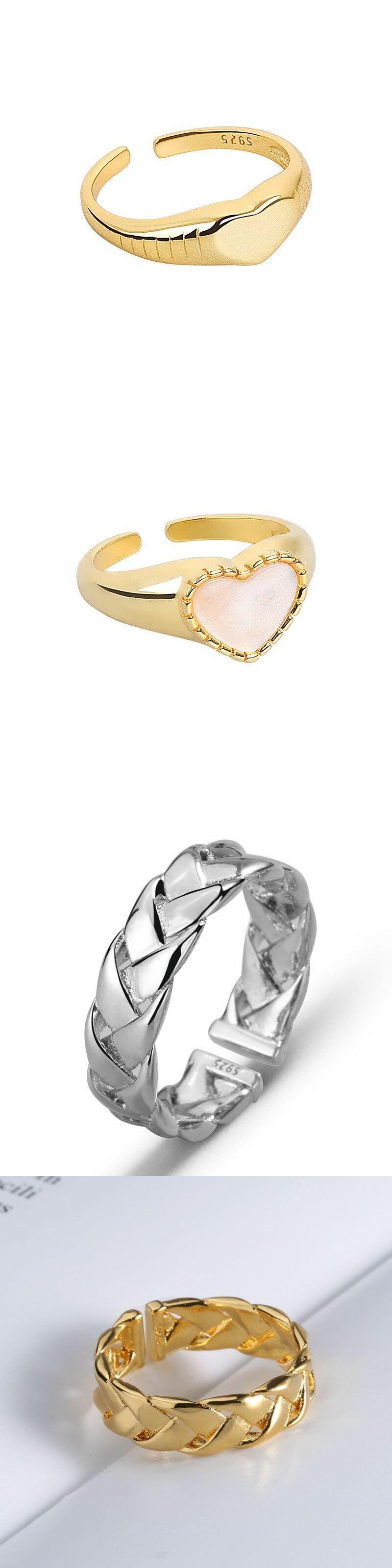 LIVVY シルバーカラースムーズツイスト織ラブハートオープンリング女性シンプルな手作りパーティージュエリーギフト 指輪 銀 Liv86901253675