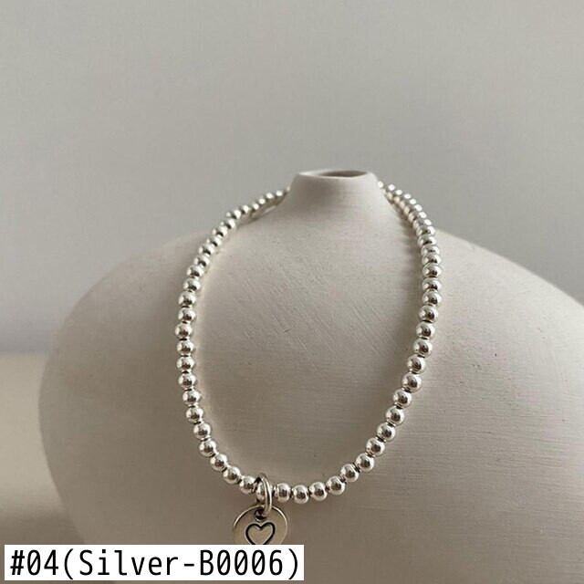 LIVVY シルバーカラーの笑顔のハートスクエアペンダントスモールラウンドビーズブレスレット女性シンプルでユニークなジュエリー 銀 スクウェア Liv59725806411