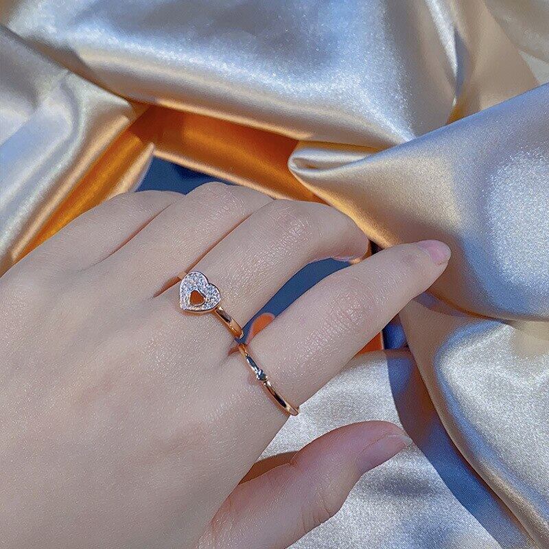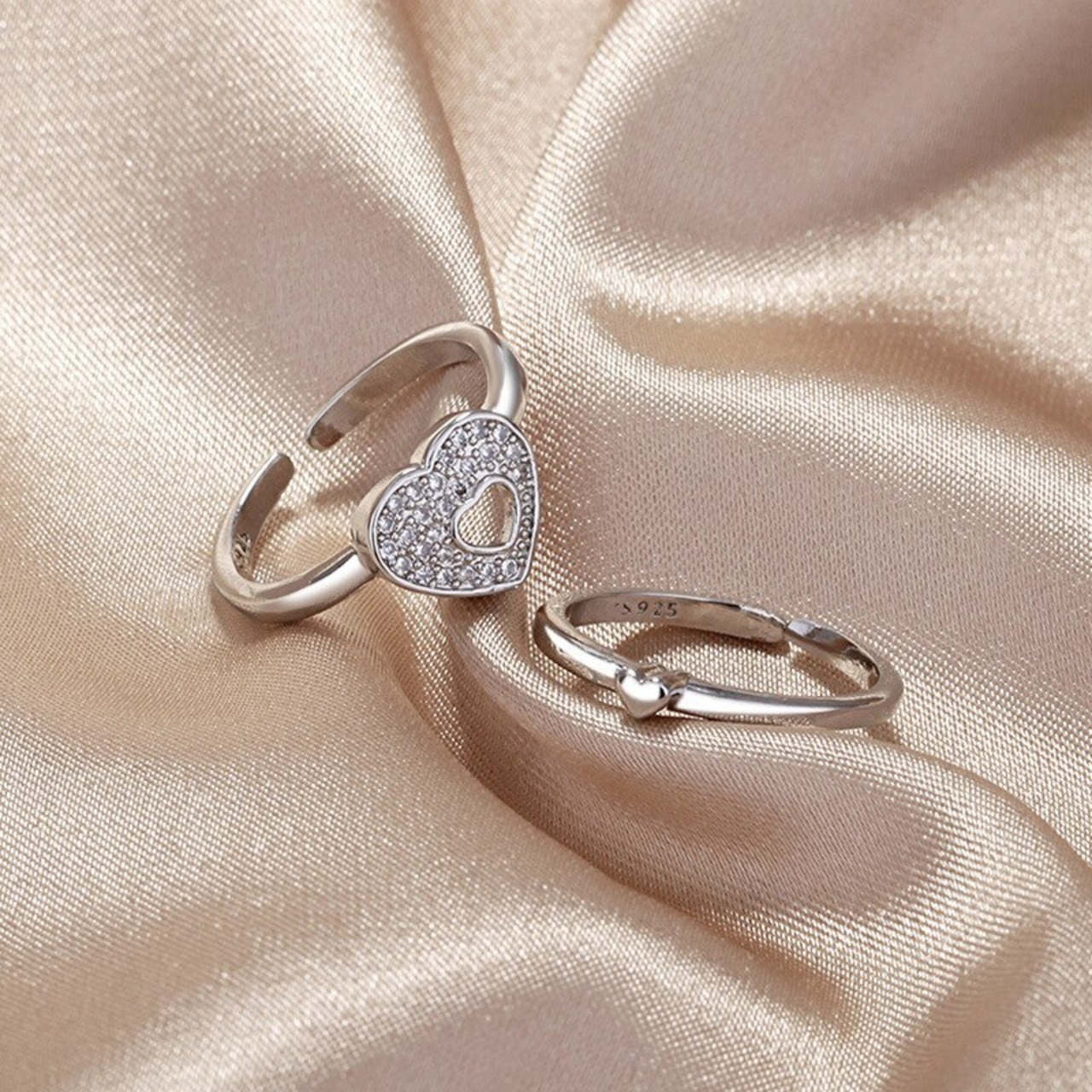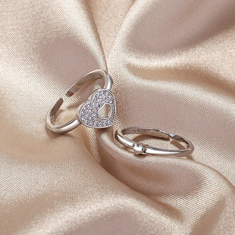 LIVVY 2 ピース/セット中空ハートシルバーカラーリング女性の高級ローズゴールドクリスタルジルコンパーティー記念ウェディングジュエリーギフト 指輪 銀 Liv8486949868