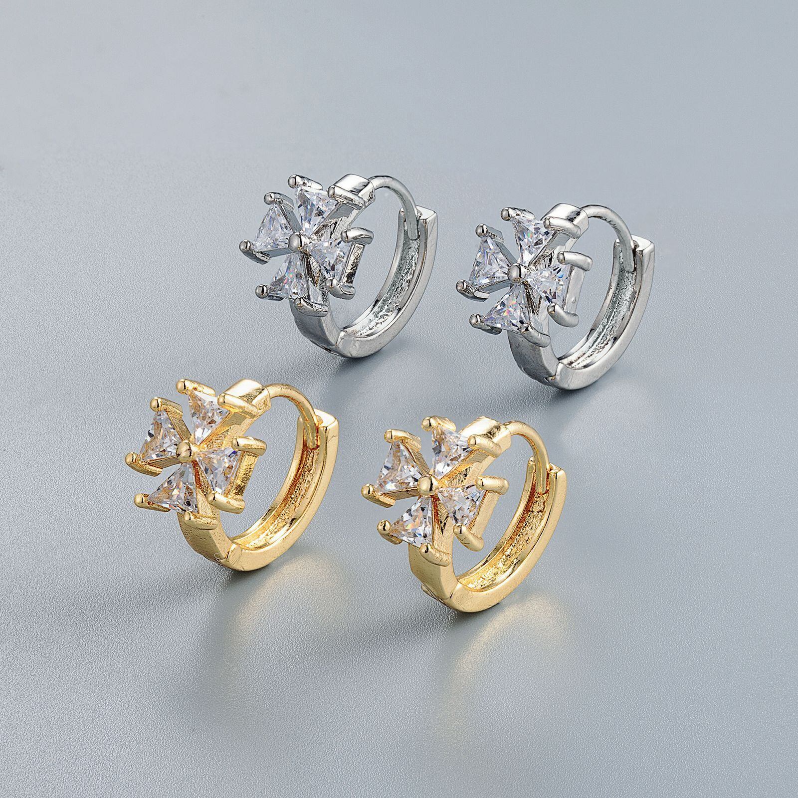 シルバーカラーの女性ジュエリークリスタルジルコンの花のイヤリングホットイヤリングパーティーギフトアクセサリー 指輪 フラワーデザイン 銀 Liv98214434782