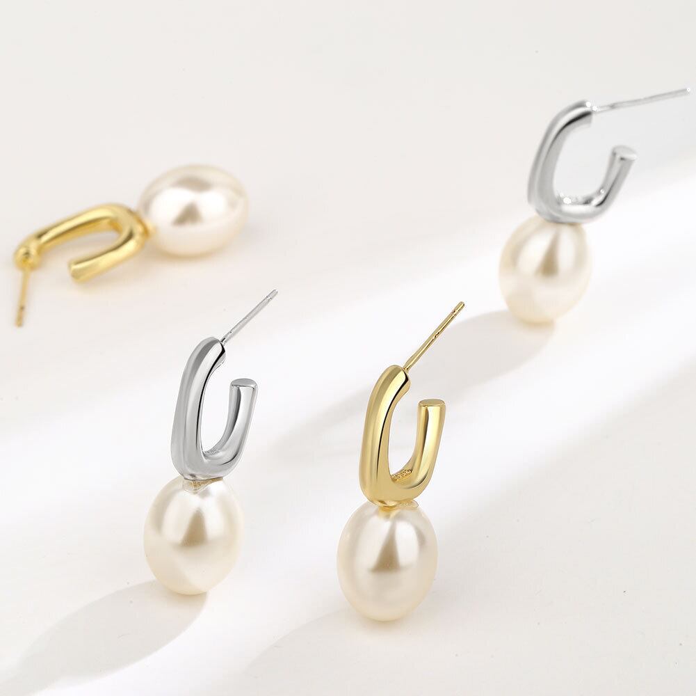 LIVVY シルバーカラーのシンプルな真珠のイヤリングの女性のトレンディなクリエイティブな幾何学的な手作りの花嫁のジュエリーアクセサリー パール 指輪 銀 Liv23937652139