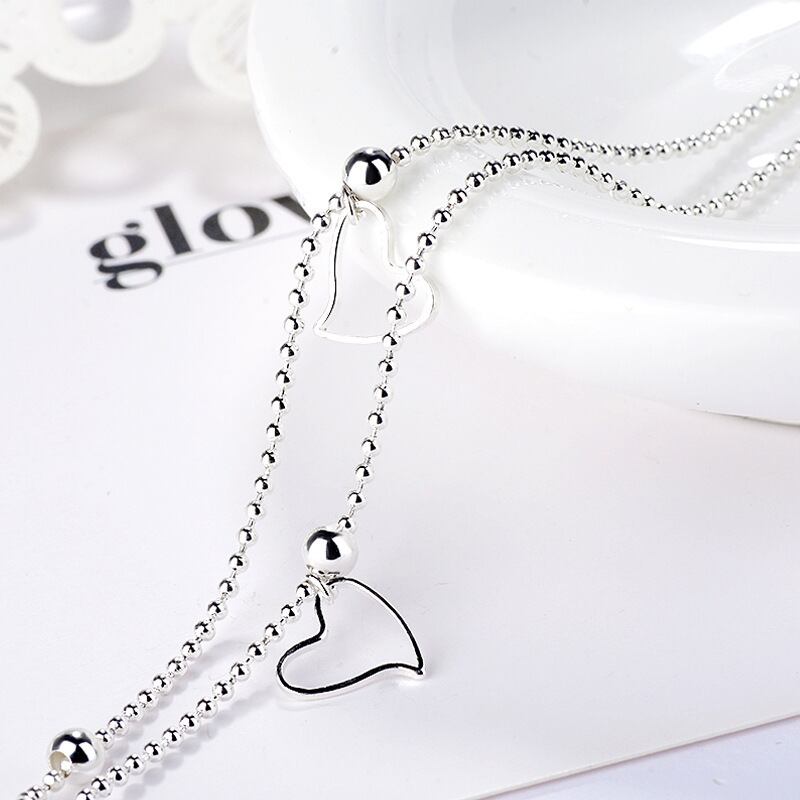 LIVVY シルバーカラー中空アウトラブハート二重層ビーズチェーンブレスレット女性ジュエリーギフト 銀 Liv43160677282