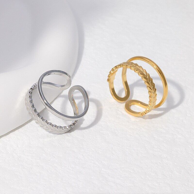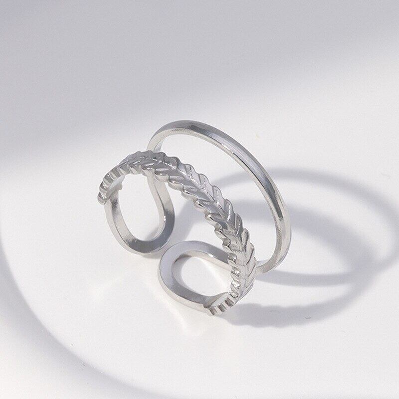 LIVVY シルバーカラー リーフ リング オープン アジャスタブル リング ファインジュエリー レディース パーティー アクセサリー 指輪 銀 Liv49167016440