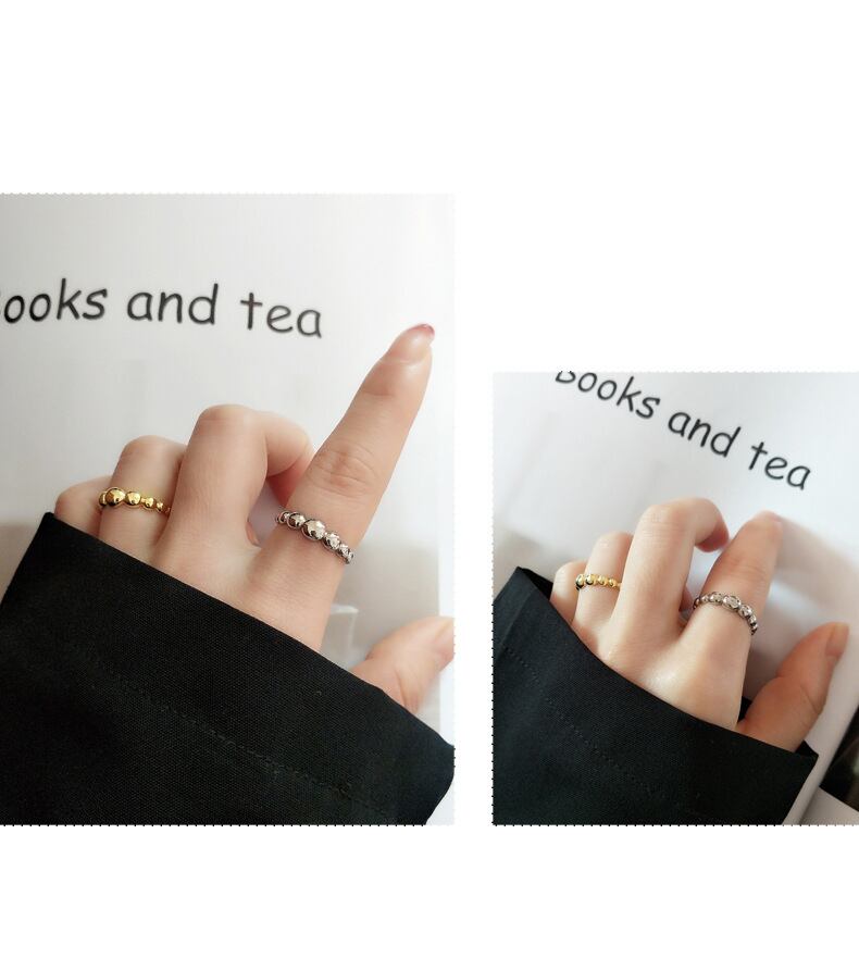 LIVVY シルバーカラーリング女性カップルミニマリストの幾何学ラウンドビーズチェーン光沢リングパーティージュエリーギフト 指輪 銀 Liv96024006571