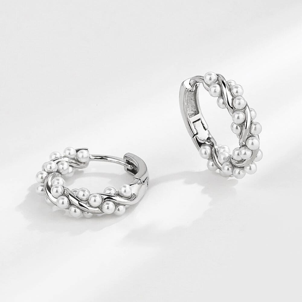 LIVVY シルバーカラーのトレンディなクリックフープイヤリング シンプルな丸型の幾何学的なパーティージュエリーギフト 指輪 銀 Liv98291481994