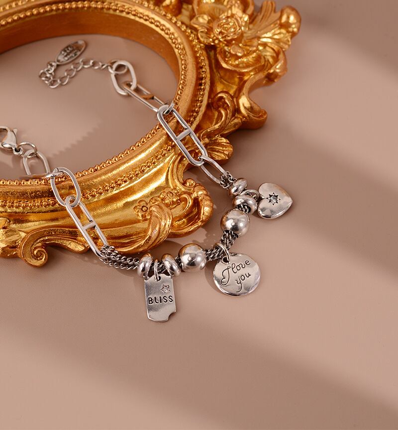 シルバーカラークリエイティブ幾何ラウンド私はあなたの手紙ハートペンダントブレスレット女性甘いロマンチックなパーティージュエル 大人ガーリー スウィート キュート カジュアル 銀 Liv5355972103