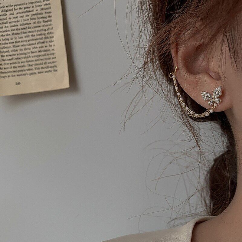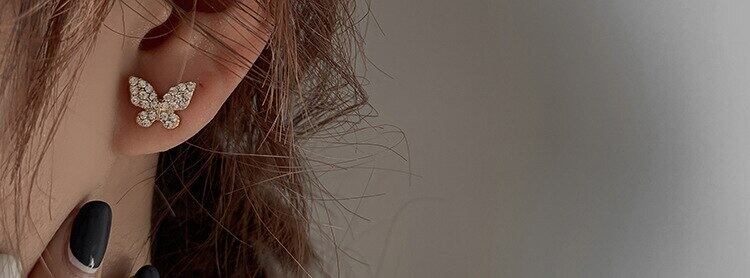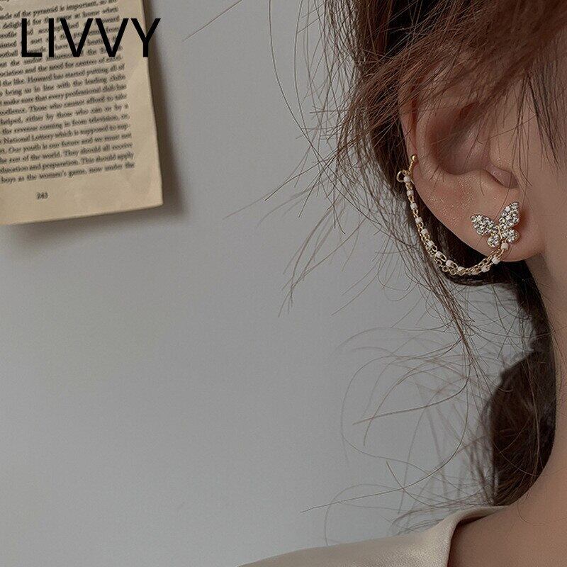LIVVY ジルコン バタフライ テル アシンメトリー イヤリング トレンディ 気質 ライト ラグジュアリー ロマンチック バレンタイン ギフト 指輪 Liv63094268970