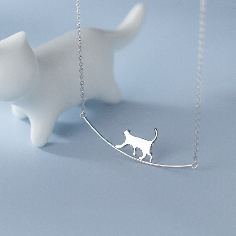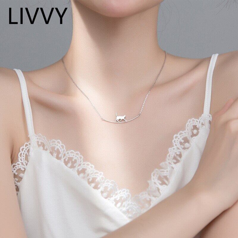 LIVVY シルバーカラー猫ペンダントネックレス女性シンプルなトレンディな動物鎖骨チェーンジュエリーアクセサリー レース 銀 Liv42765280096