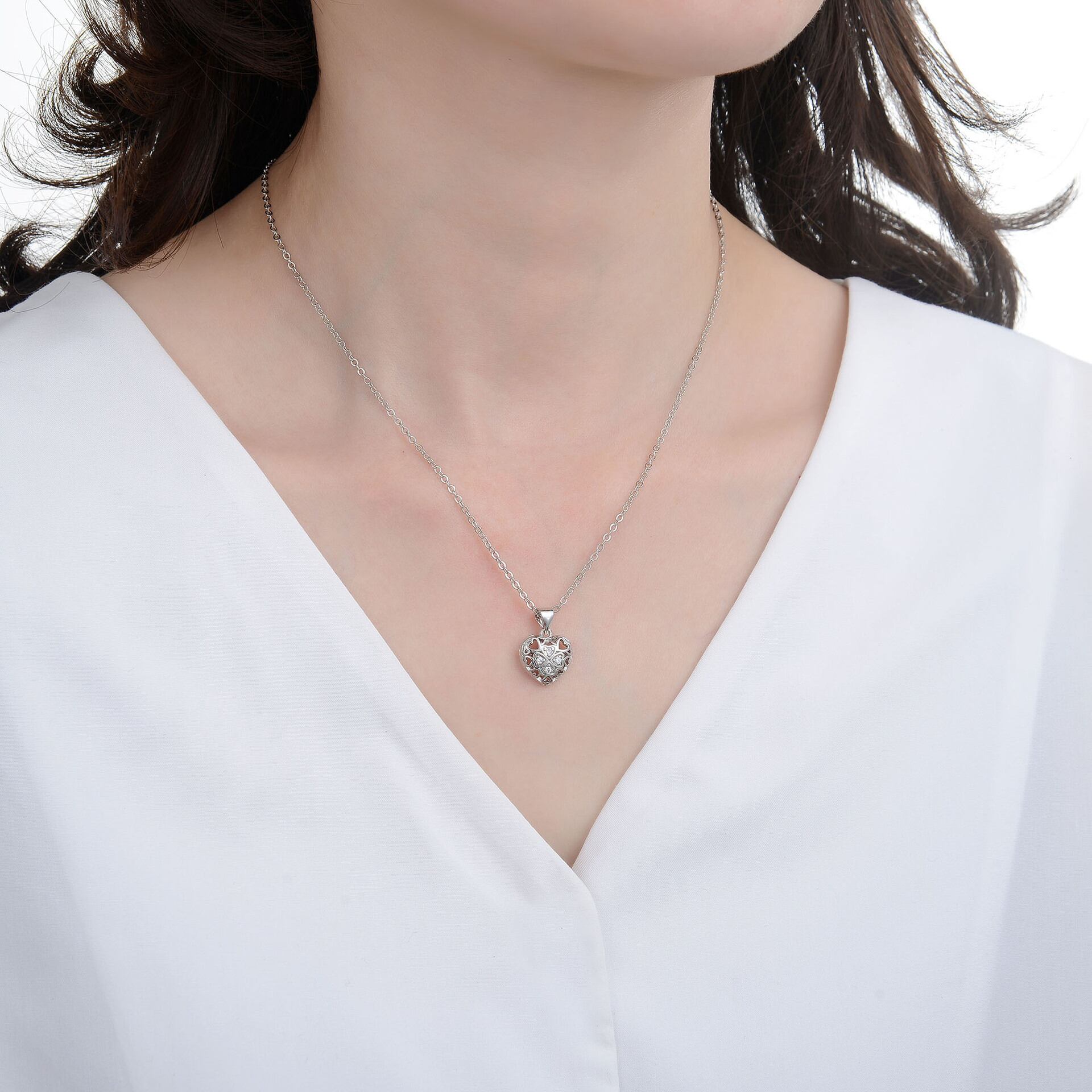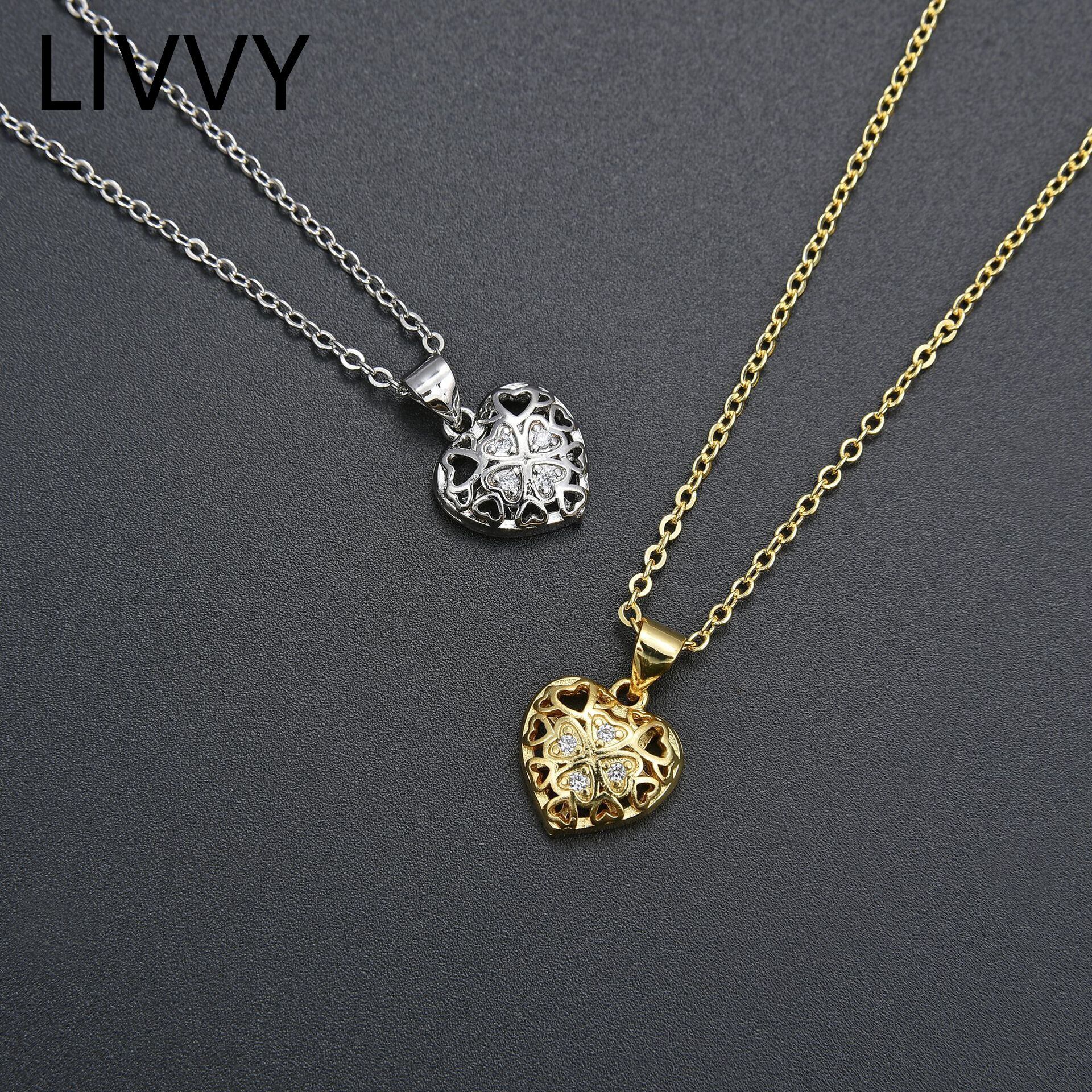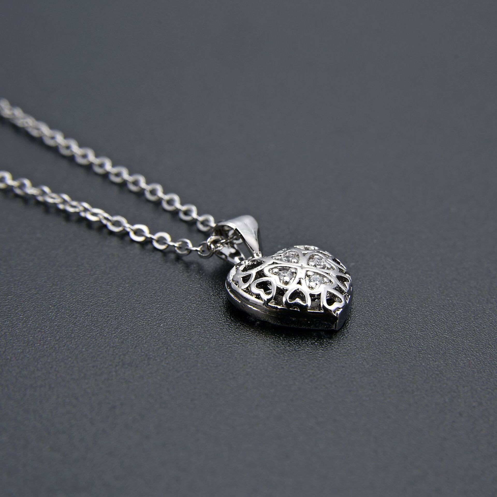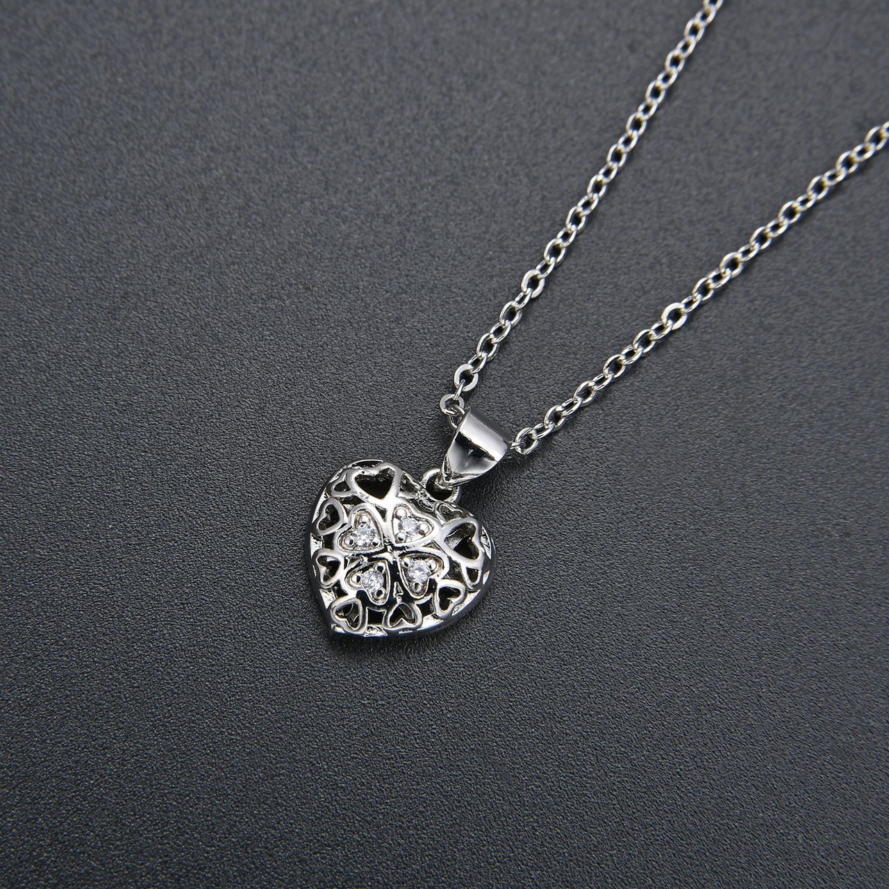 LIVVY クリエイティブ中空愛ハートジルコンペンダントシルバーカラーネックレス女性絶妙なチャームジュエリーギフト レース 銀 Liv33212914883