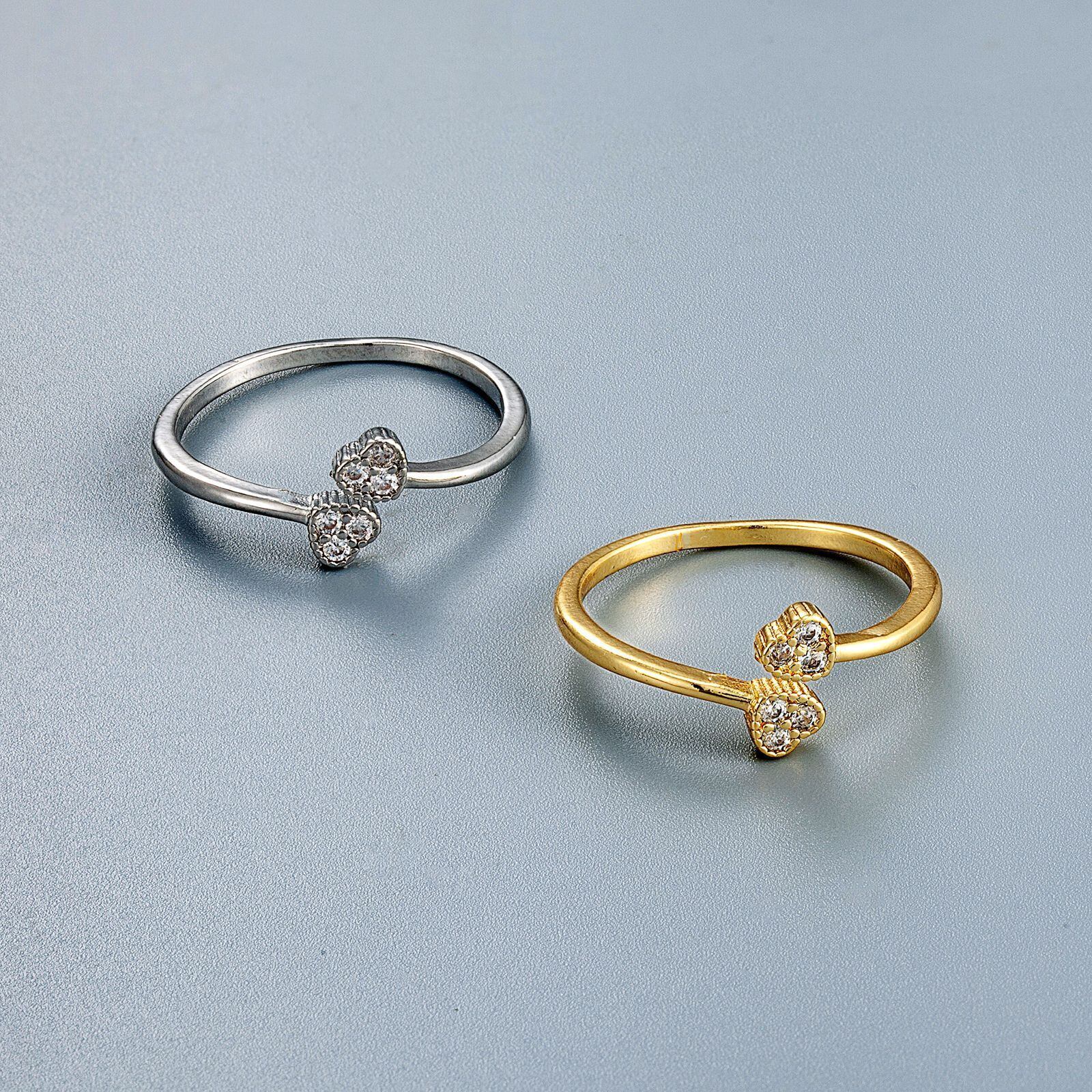 LIVVY シルバーカラーシンプルなクリエイティブダブルハート型ジルコン調節可能なリング女性ジュエリー婚約パーティーギフト アジャスタブル 指輪 銀 Liv36783029283