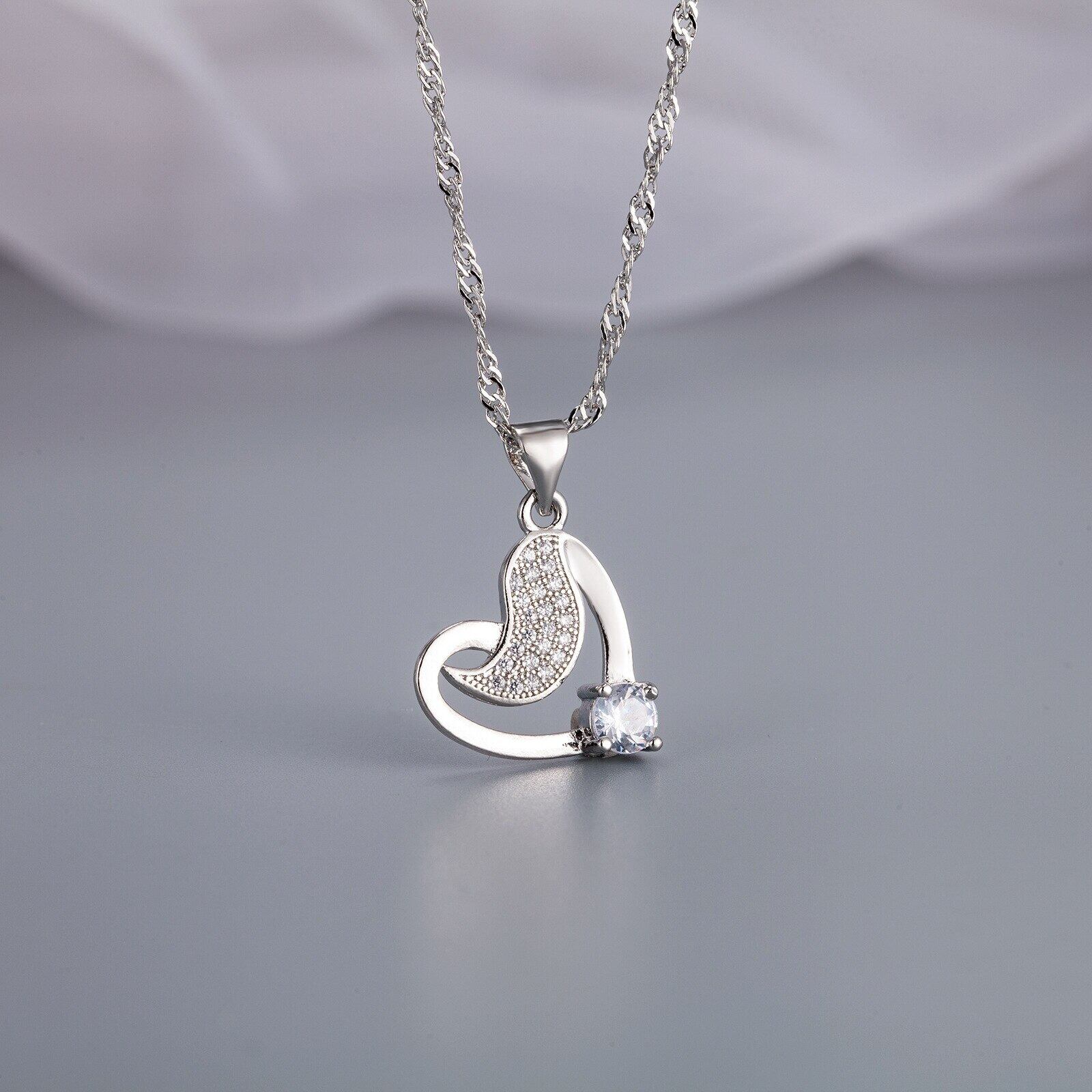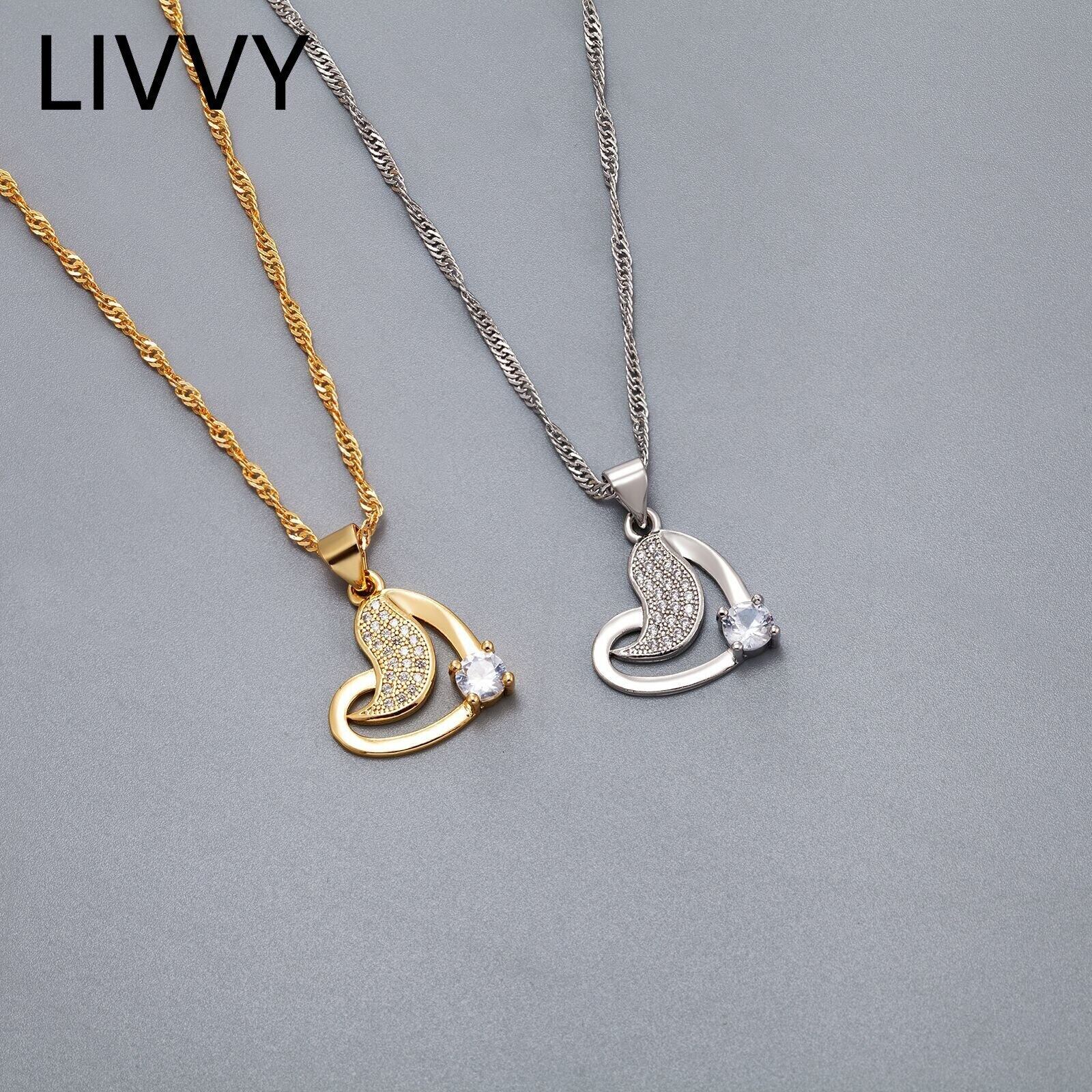 LIVVY シルバーカラークリエイティブ中空ハートシェイプクリスタルジルコンペンダントネックレス女性ライトラグジュアリーファインウェディングジュエリー レース 銀 Liv39799031788
