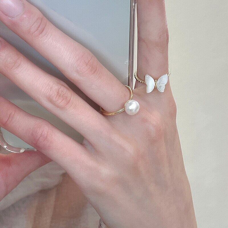 LIVVY シルバーカラーリングクリエイティブジルコンバタフライパールリングウェディングブライドジュエリーギフト女性 指輪 真珠 銀 Liv49810173844