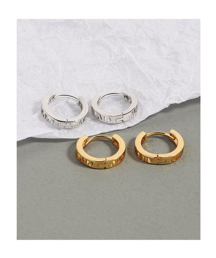 LIVVY シンプルな幾何学中空アウトシルバーカラーイヤリング女性パーティージュエリー耳アクセサリー 指輪 銀 Liv92481295363
