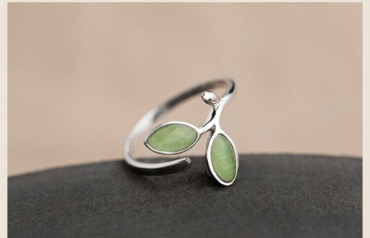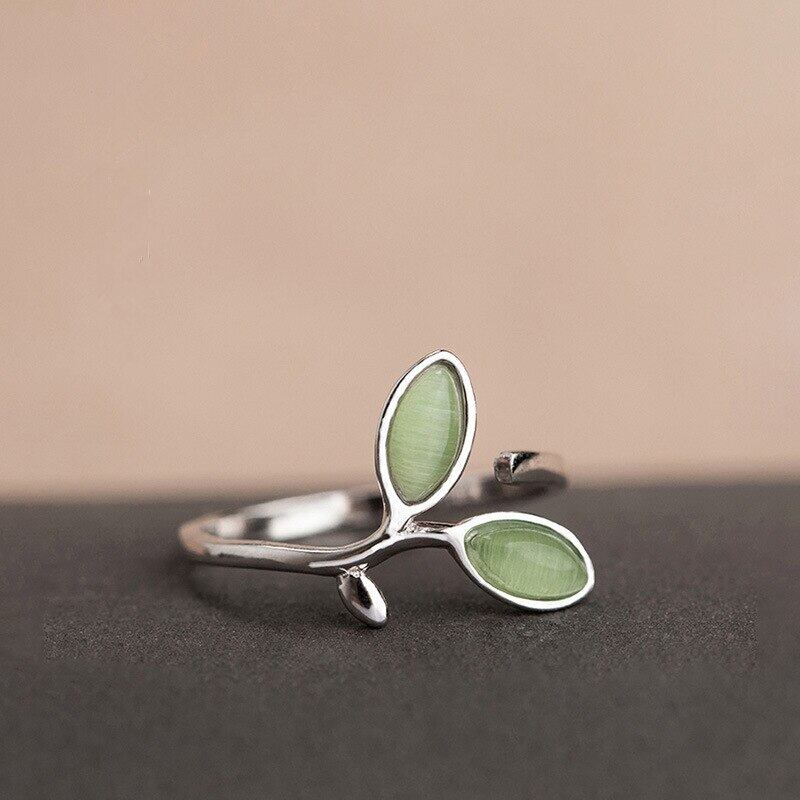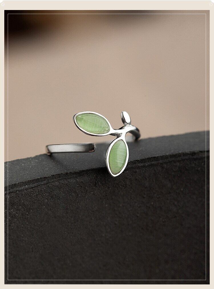 LIVVY シルバーカラーテンダーシュートグリーンオパール調節可能なリング女性クリエイティブジュエリーパーティーアクセサリーギフト アジャスタブル 指輪 蛋白石 銀 Liv76677905321