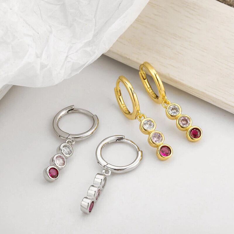 LIVVY シルバーカラーラウンドチェーンレッドジルコン珍しい耳飾りイヤリング女性ライトラグジュアリートレンディエレガンスジュエリー 指輪 銀 Liv84342814558