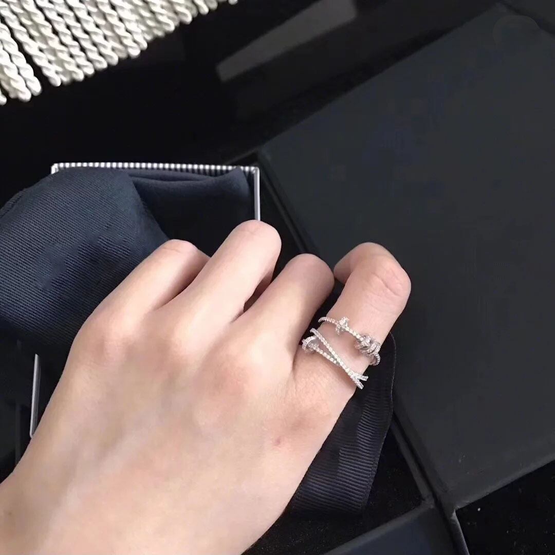 LIVVY シルバーカラージルコン多層クロス幾何学的婚約指輪魅力的な女性パーティーファインジュエリーギフト マルチレイヤー リング 銀 Liv20631551385