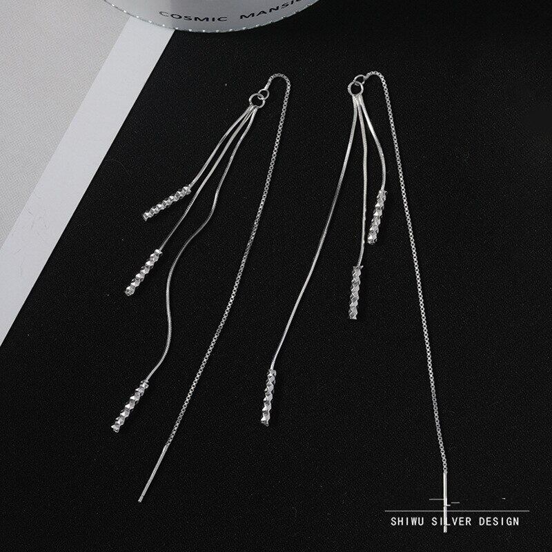 LIVVY シルバーカラートレンドロング Tels 耳ラインイヤリング女性の高級トレンディなシンプルなパーティージュエリーアクセサリーギフト 指輪 銀 Liv65117833107