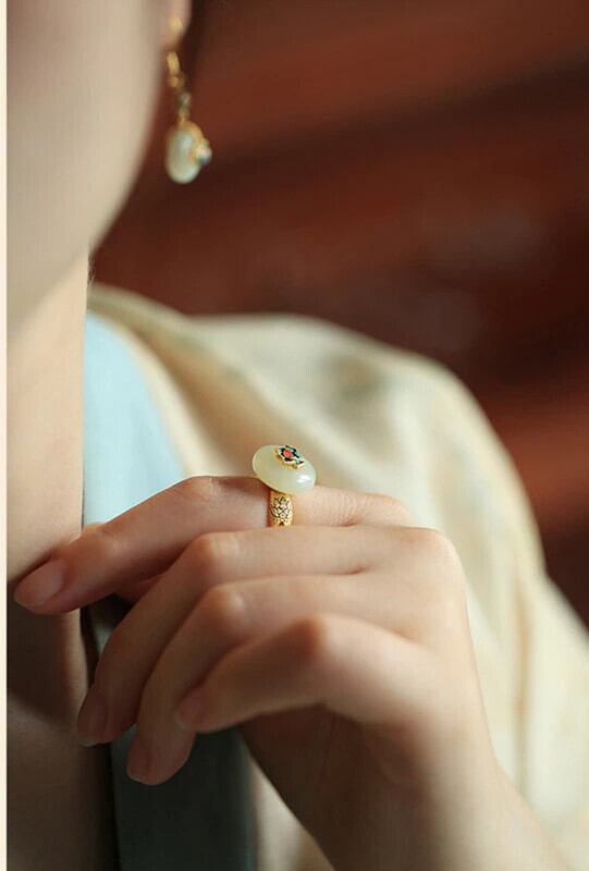 LIVVY 古代メソッド象眼天然石中国エナメル蓮平和クラスプオープニングリング女性女の子気質ファインジュエリー ナチュラル 指輪 Liv23237805054