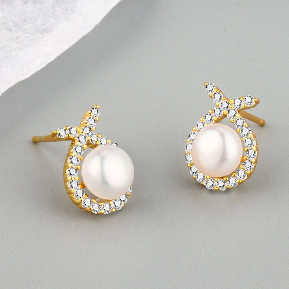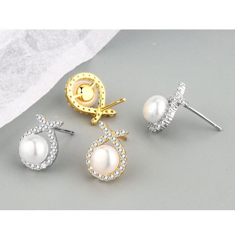 LIVVY シルバーカラーくり抜かれた幾何学的なクロス象眼ジルコン真珠のスタッドのイヤリング女性ライト高級トレンディなジュエリーギフト パール 指輪 銀 Liv83641337685