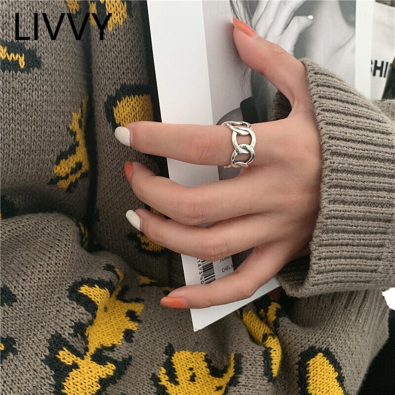 LIVVY シルバーカラー シンプル 中空 ラウンド チェーン リング レディース メンズ パンク パーティー ジュエリー ギフト 指輪 銀 Liv47950065812