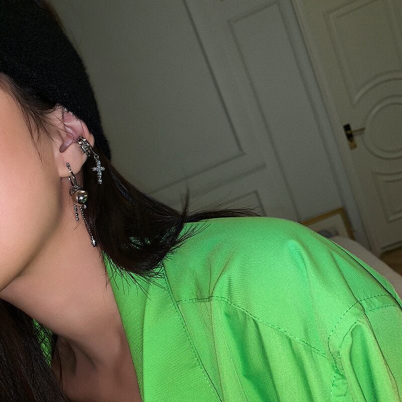 LIVVY シルバーカラー クロス 非対称 イヤークリップ イヤリング 若い女の子 ティーン ラウンド サークル パーティー アクセサリー ギフト 銀 Liv93926710303