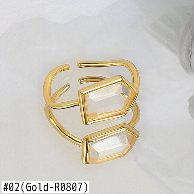LIVVY シルバーカラー幾何学天然水晶リングトレンディなシンプルなオープンジュエリーパーティーアクセサリーギフト ナチュラル 指輪 銀 Liv96183855591
