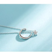 LIVVY シルバーカラートレンディシンプルムーンスターペンダントネックレス女性鎖骨チェーンパーティージュエリー レース 銀 Liv23483512679