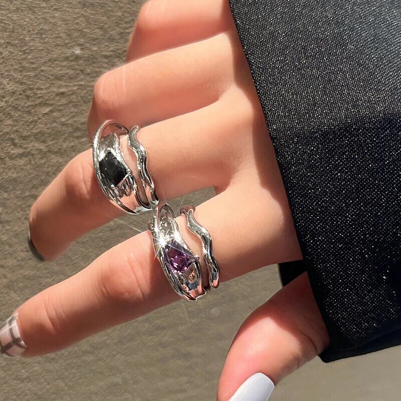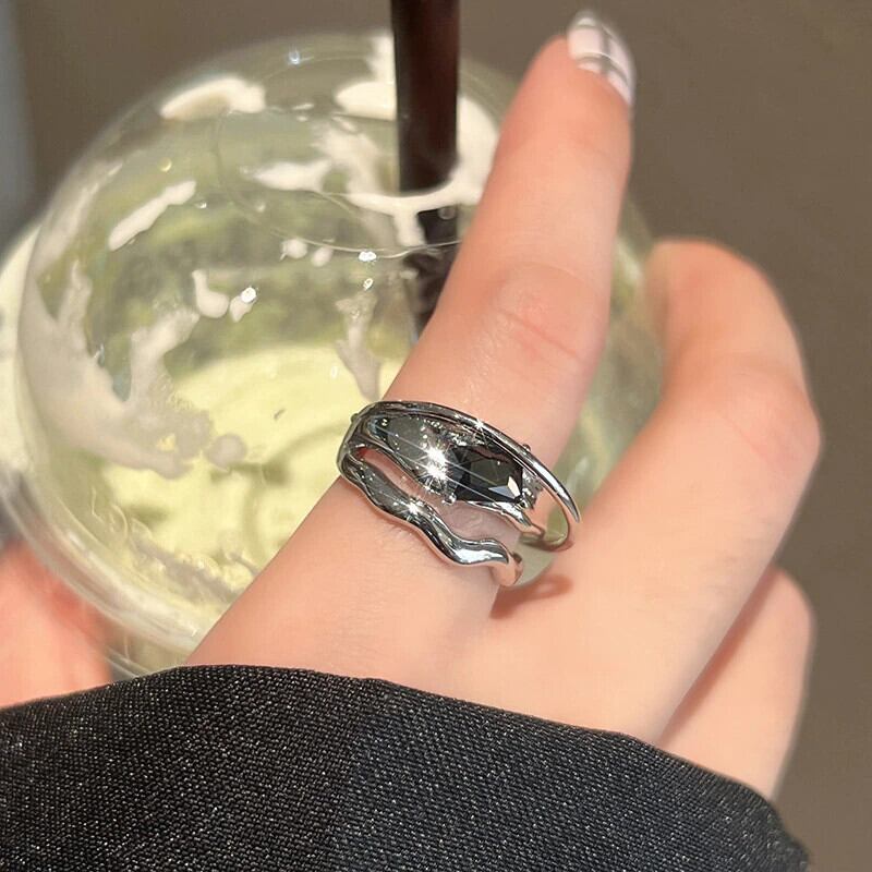 シルバーカラークリエイティブ不規則な幾何学ジルコン二重層リング女性パーティージュエリー 指輪 銀 Liv39195010702