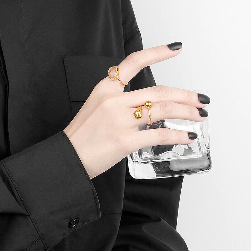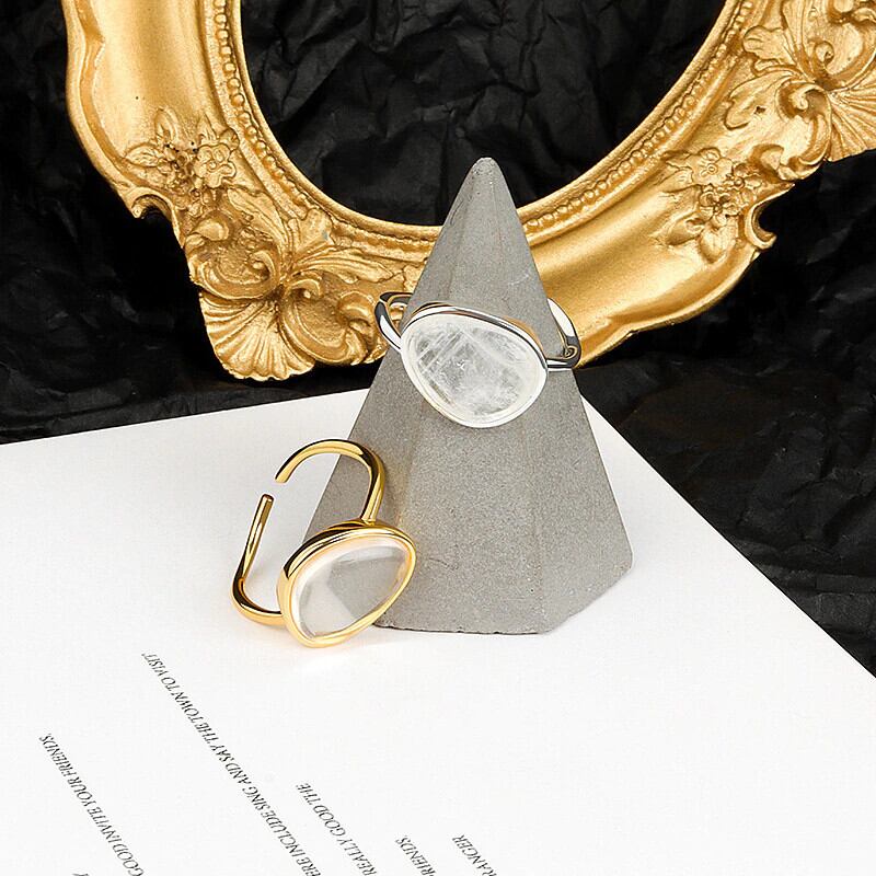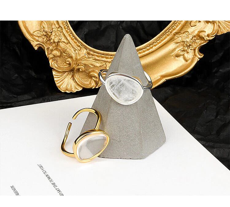 LIVVY シルバーカラーパーソナリティ不規則なラウンド天然水晶リング女性トレンディジュエリー調節可能なギフト アジャスタブル ナチュラル 指輪 銀 Liv92691226423
