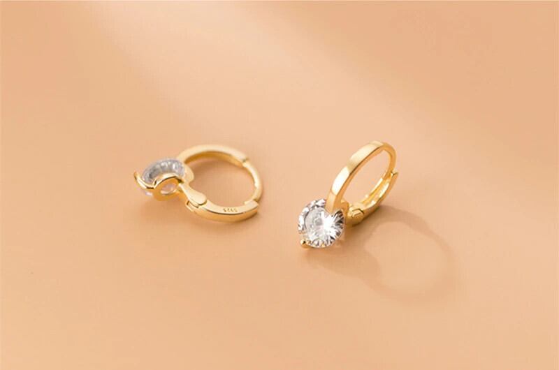 LIVVY シルバーカラーの幾何学ジルコンフープイヤリング女性気質シンプルでユニークなチャームジュエリーギフト 指輪 銀 Liv17234403118