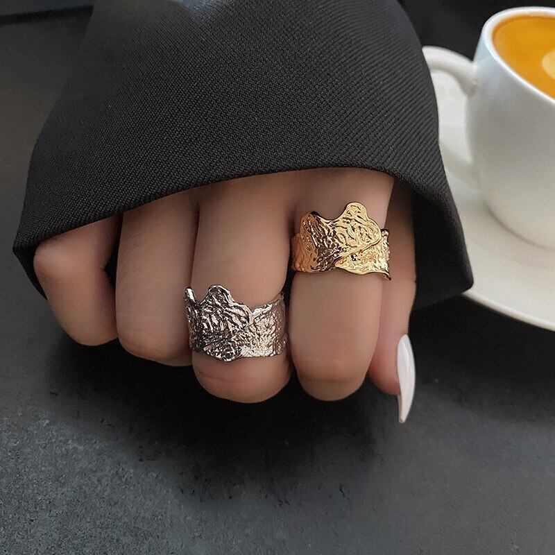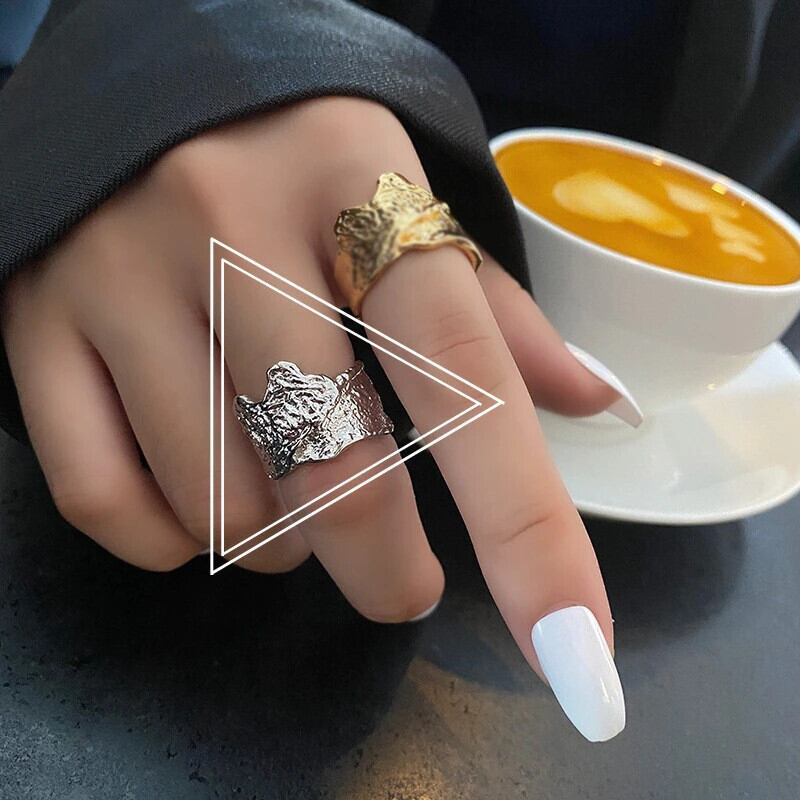 LIVVY シルバーカラー ミニマリスト 不規則 調節可能 ワイドリング 女性 レトロ ジュエリー アクセサリー ギフト アジャスタブル 指輪 銀 Liv19767063018