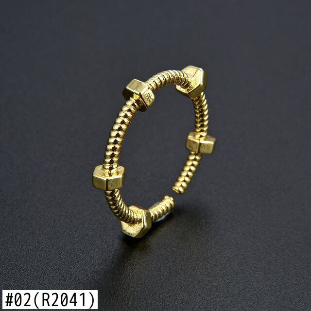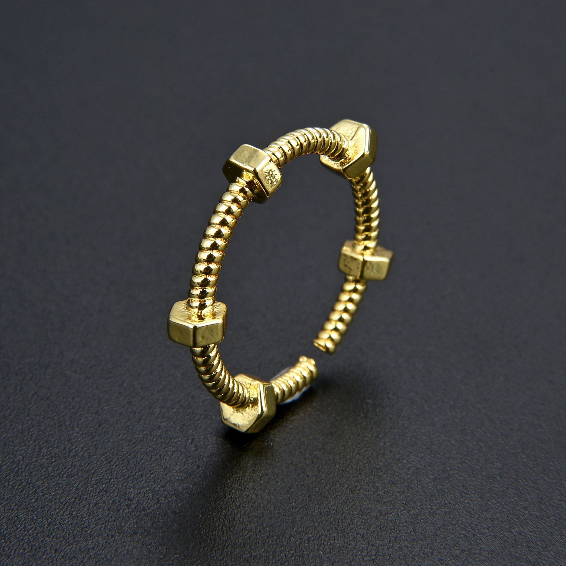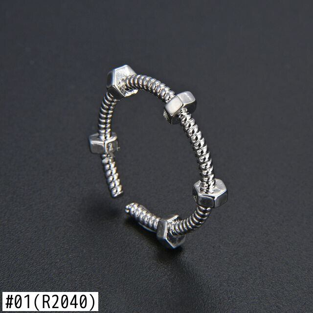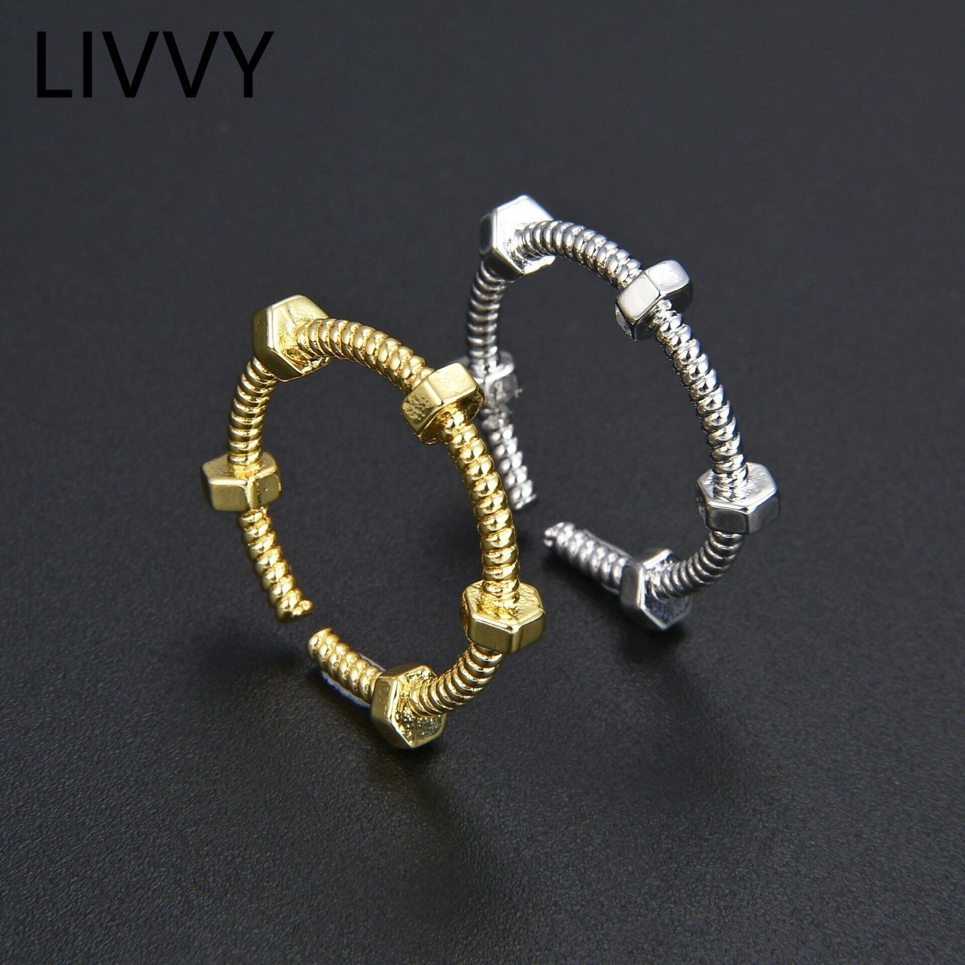 LIVVY シルバーカラーパンクネジナット調整リング女性-エンド六角リングジュエリーアクセサリー アジャスタブル 指輪 銀 Liv73347434355