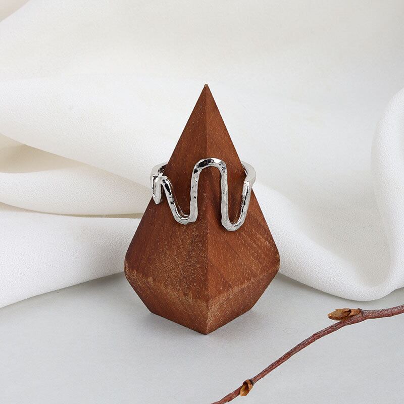 LIVVY ホットシルバーカラー絶妙なジュエリー心電図オープン非対称スライバーラブリング女性 2021 トレンディ 指輪 銀 Liv36905854690