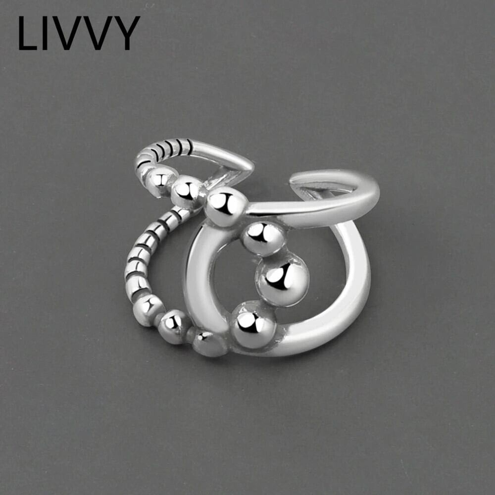 タイシルバーカラー二重層ドットチェーンクロスリングカップルレトロ手作り人差し指リングパーティージュエリーギフト 指輪 銀 Liv9796305347
