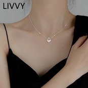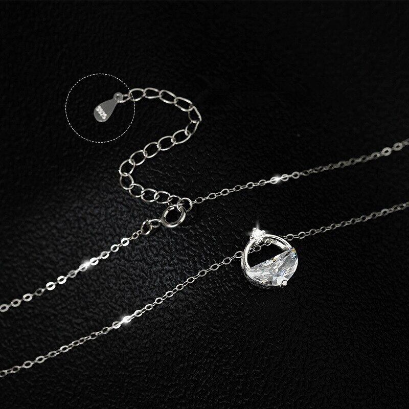 LIVVY Minimalis クリスタルラウンド t ペンダントネックレスシルバーカラーシンプルな細鎖骨チェーン気質ギフト レース 銀 Liv30481837087