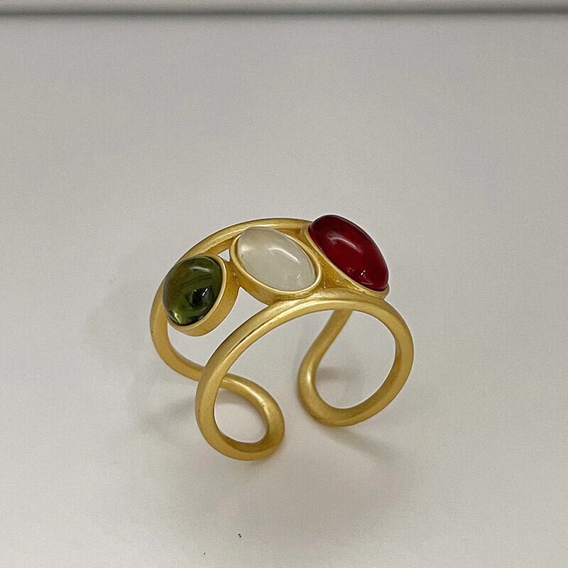 LIVVY ゴールドカラーのカラフルなジルコン中空アウトワイドレトロ調節可能なリング女性インシンプルなエレガンスパーティーギフト アジャスタブル 指輪 Liv11715103156