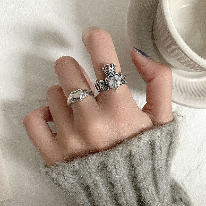 LIVVY シルバーカラーティアラクラウンスパークリングラブハートリング女性カップルジュエリーギフト 指輪 銀 Liv17081057123