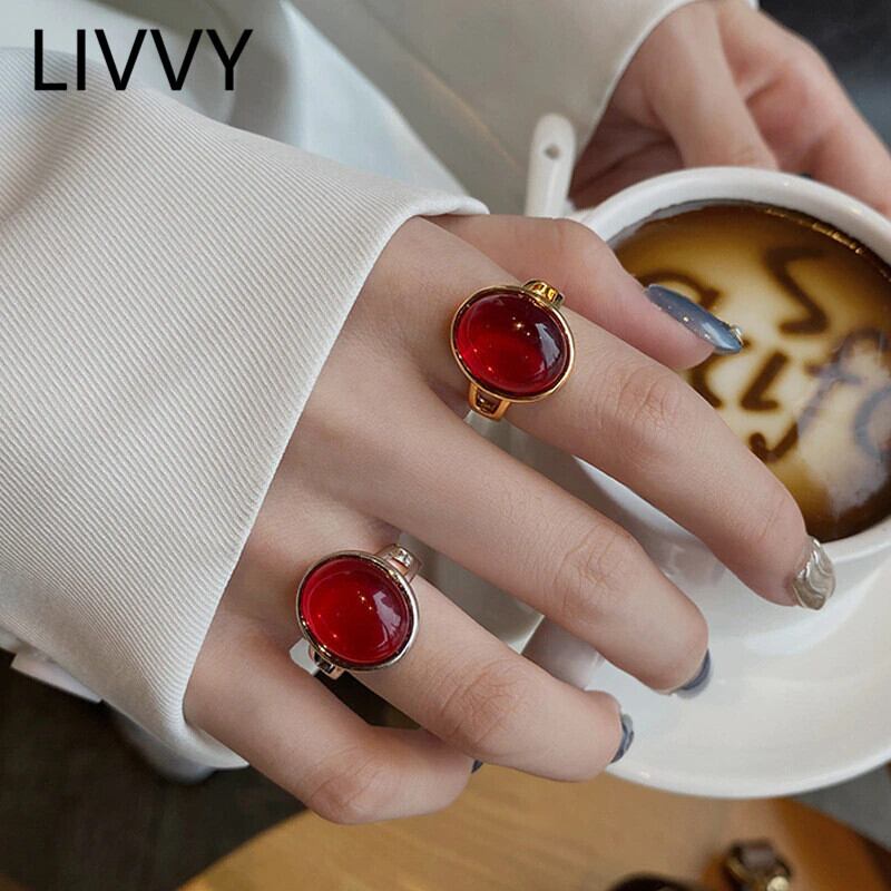 LIVVY トレンドビッグオーバル型レッドクリスタルジルコンシルバーカラーリング女性高級記念誕生日パーティージュエリー 指輪 銀 Liv82782463466