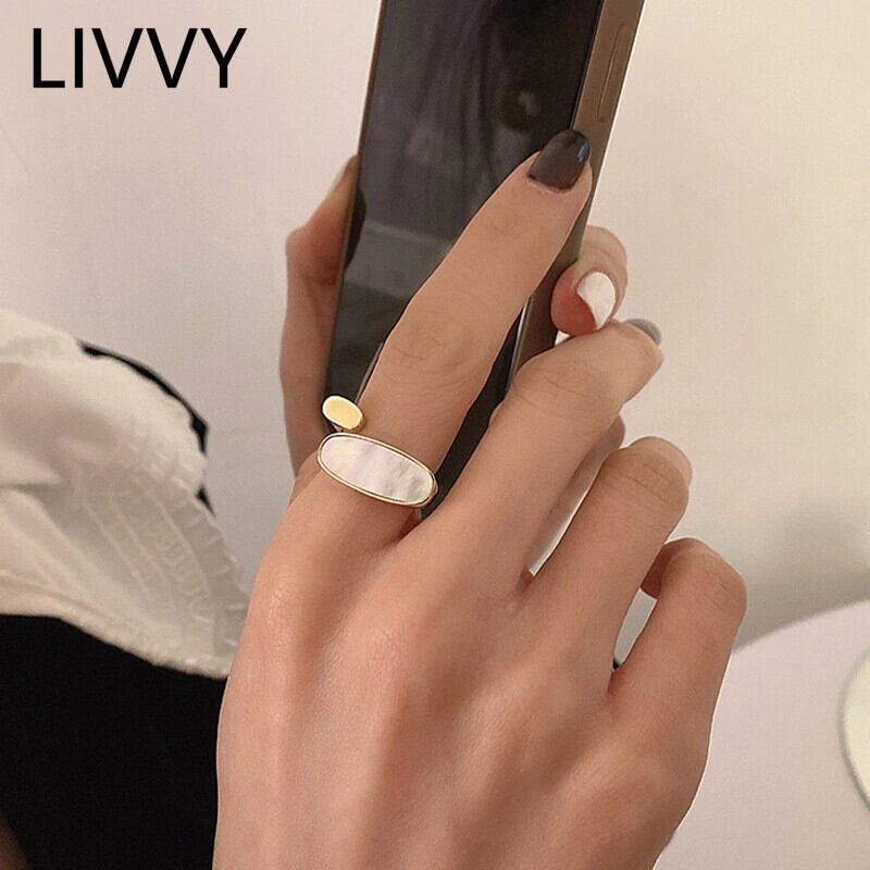 LIVVY シルバーカラーシェル幾何学リング女性ニッチな個性シンプルなゴールデンリング 2021 トレンド 指輪 銀 Liv82153010187